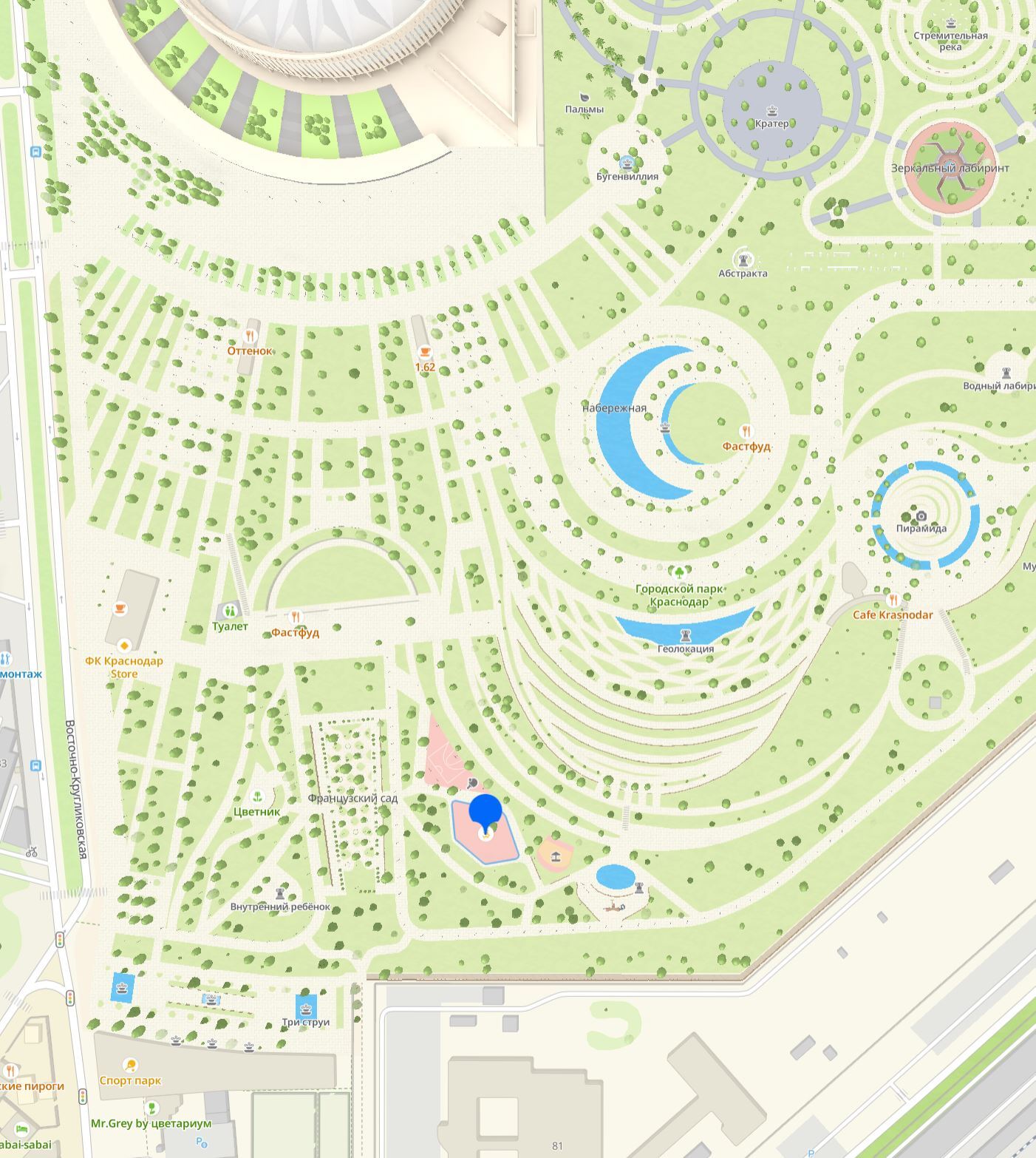 Площадка для малышей небольшая, но на ней расположены интересные объекты. Например, ручной экскаватор, который всегда привлекает внимание детей. Берите с собой формочки для песка, лопатки. Дети будут увлечены на долгое время. Площадка окружена скамьей, так что и взрослым будет комфортно отдыхать и наблюдать за малышом.